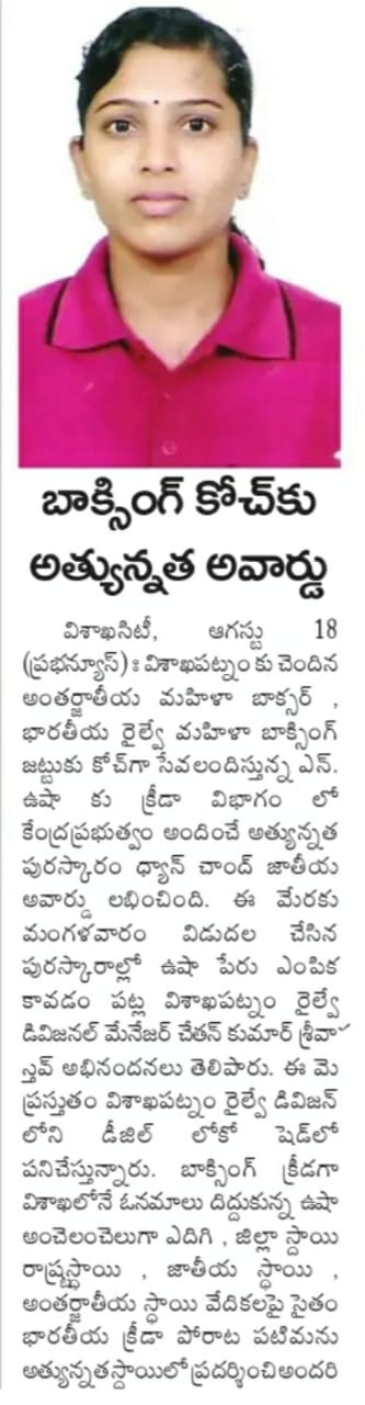 Ms USHA Dhyan Chand Awardee